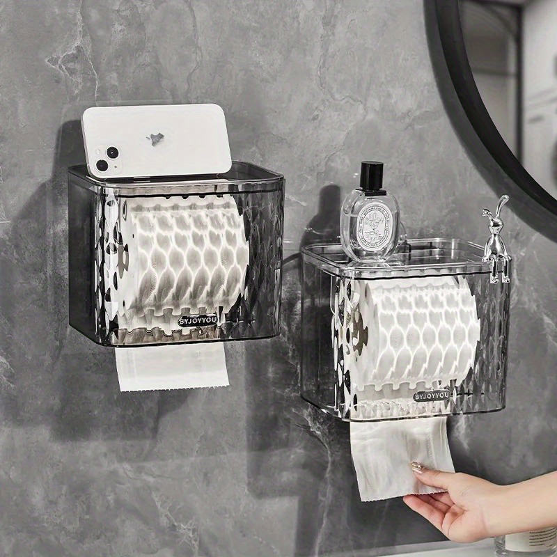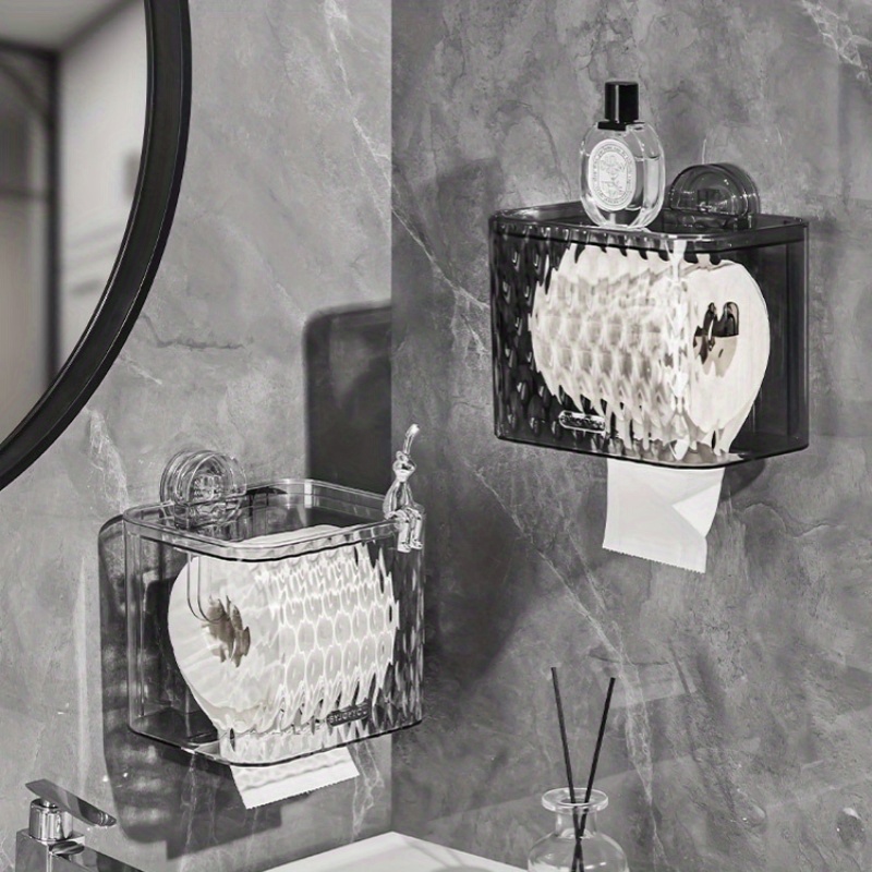 1pc Suction Cup Adhesive Toilet Tissue Box Holder - Waterproof No Drill Installation, Space-Saving Wall-Mounted Bathroom Shelf for Shower, Bathtub, Door - Compatible with Single\u002FDouble Roll Toilets (Plastic, Easy Setup)